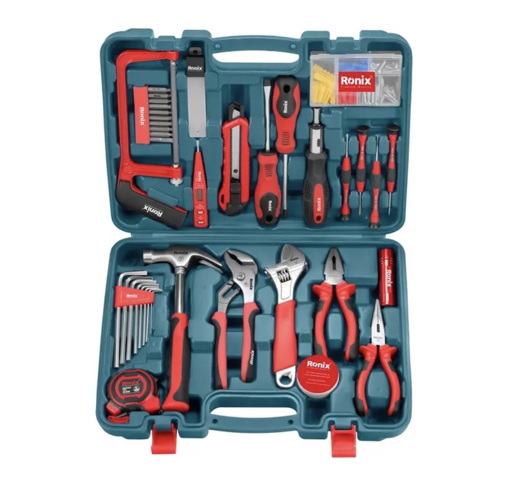 شرح ابزارها نوار عایق 0.15mm*17mm*5m، کاتر 18*100mm، فازمتر 13cm*1.8cm، پیچ گوشتی دوسو1.5 1.5*130mm، پیچ گوشتی چهارسو PH000 1.5*38mm، پیچ گوشتی دوسو2.0 2*38mm، PH00 پیچ گوشتی چهارسو 2.5*38mm، انبر دست 6″، دم باریک 6″، آچار آلن 1.5 2 2.5 3 4 5 5.5 6، چکش دسته بلند 240mm، متر سه متری 3m*19mm، آچارفرانسه 8″، پیچ گوشتی دوسو 6*100mm، پیچ گوشتی چهارسو 6*100mm، مینی اره 6’’، دسته جغجغه 160mm، ده عدد مجموعه سر پیچ گوشتی 50 میلمتری ph1 ph2 ph3 pz1 pz2 pz3 sl4 sl5 sl6 ADA، ست تیغه ده عددی18*0.5mm ، آچار لوله گیر A6 8’’، جعبه بسته شونده 112.5*74.2*23.6mm، چراغ قوه 85*25mm
